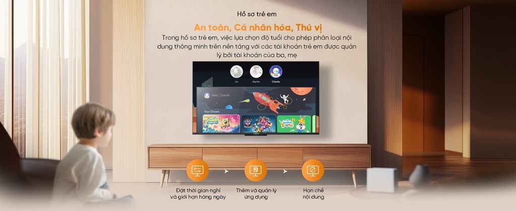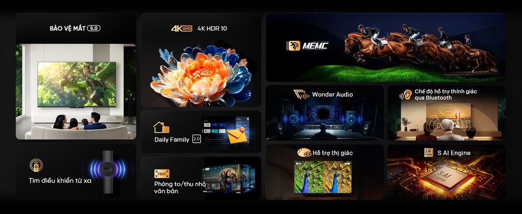 | Tính năng | Hệ điều hành Google TV Điều Khiển Giọng nói không cần remote Màn hình tràn viền 4.0 HDR 10 , Game mode Lọc ánh sáng xanh Chống Nhấp Nháy Tìm kiếm điều khiển TV |
