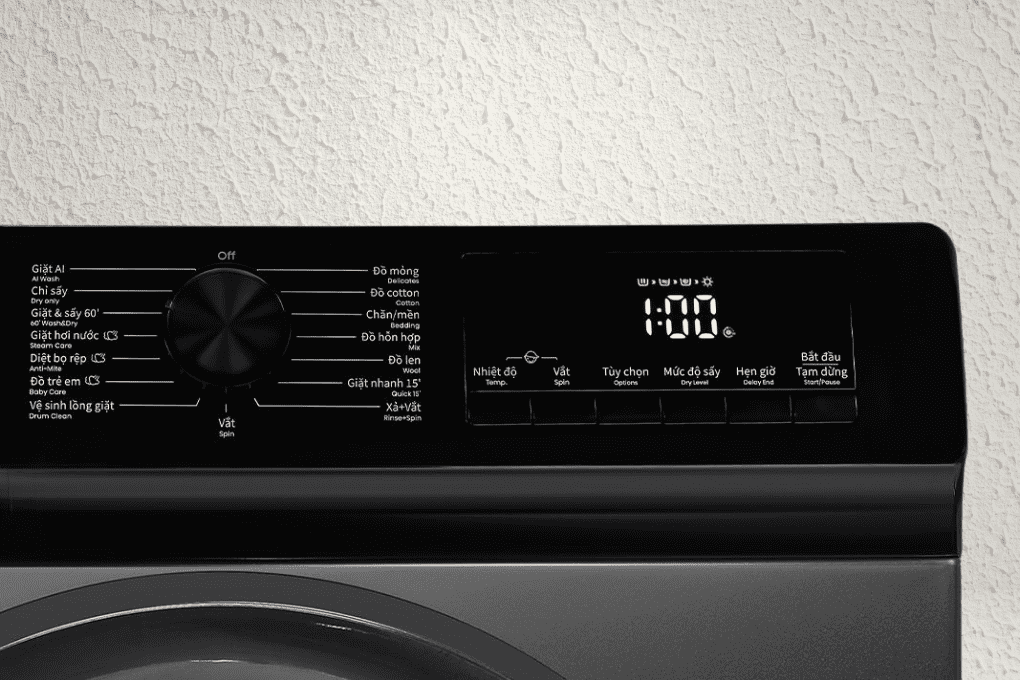 Bảng điều khiển: | Song ngữ Anh - Việt có núm xoay, nút nhấn và màn hình hiển thị |