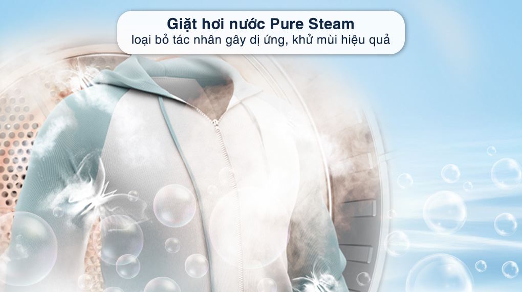 Đáng chú ý là chế độ Giặt hơi nước Pure Steam, hỗ trợ diệt khuẩn và khử mùi, rất phù hợp cho nhà có trẻ nhỏ, người cao tuổi hoặc những ai có làn da nhạy cảm. Chương trình Giặt & Sấy 60 phút lại thích hợp với quần áo mặc trong vài tiếng, ít bám bẩn ở những nơi khó vệ sinh như cổ áo và tay áo, các món đồ cần làm sạch và sấy khô nhanh để sử dụng trong ngày. Quy trình BabyCare sử dụng nước nhiệt độ cao giúp khử trùng hiệu quả, an toàn cho đồ của trẻ em và cả đồ lót.